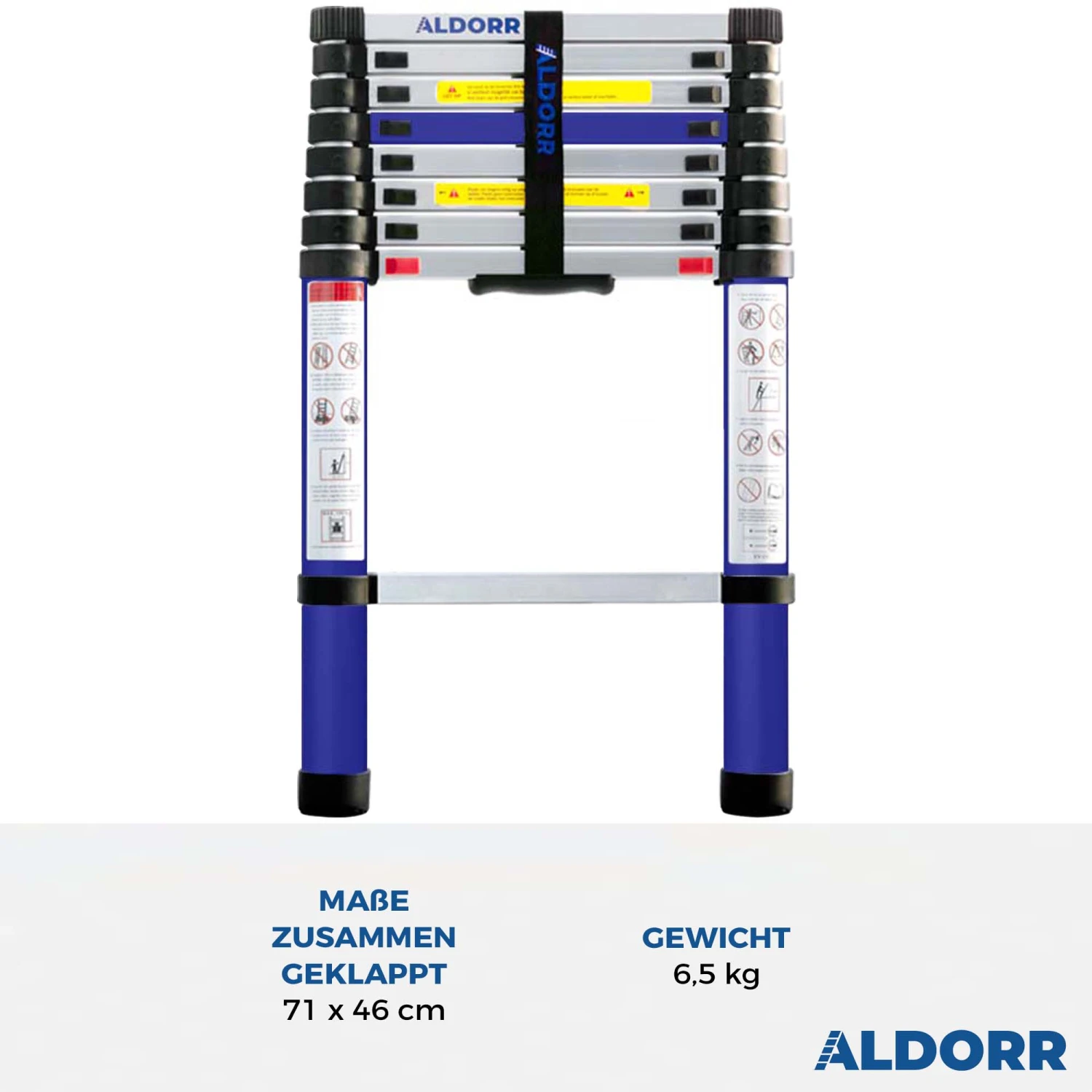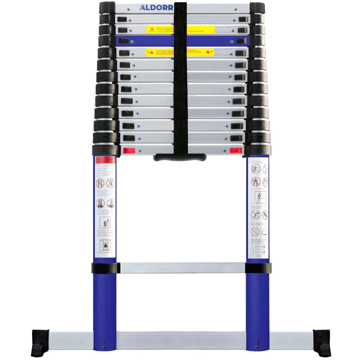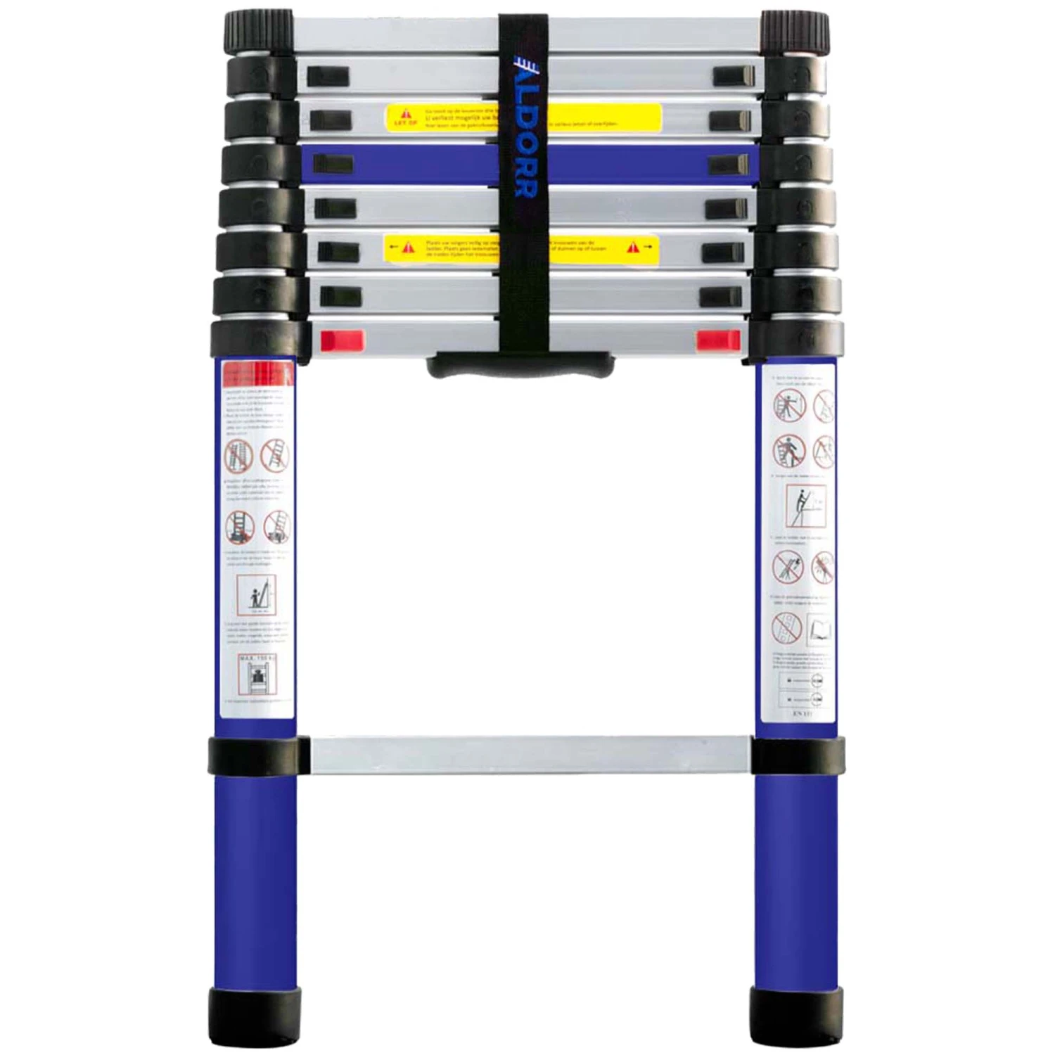 Die ALDORR Home Teleskopleiter ist eine robuste Leiter aus eloxiertem Aluminium und Schutzbeschichtung. Die Teleskopleiter ist mit einem sicheren Soft-Close-Mechanismus ausgestattet. Dies ermöglicht Ihnen nicht nur ein sicheres Arbeiten in der Höhe, sondern auch ein sicheres Zusammenklappen der Teleskopleiter und ein langsames Einfahren der Stufen ohne Gefahr für die Finger.