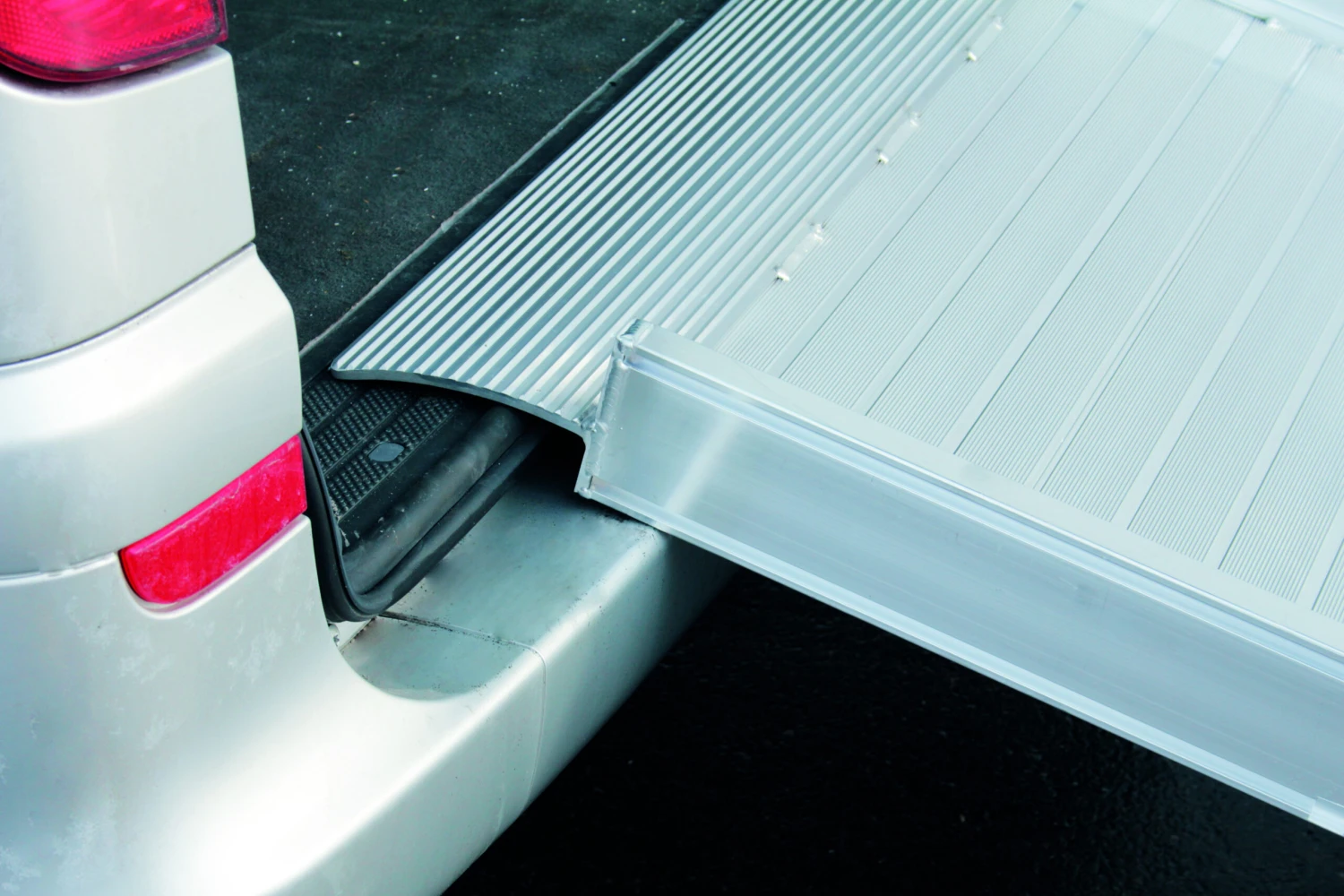 - Stabile Ladebrücke aus rutschsicherem, geriffeltem Aluminium