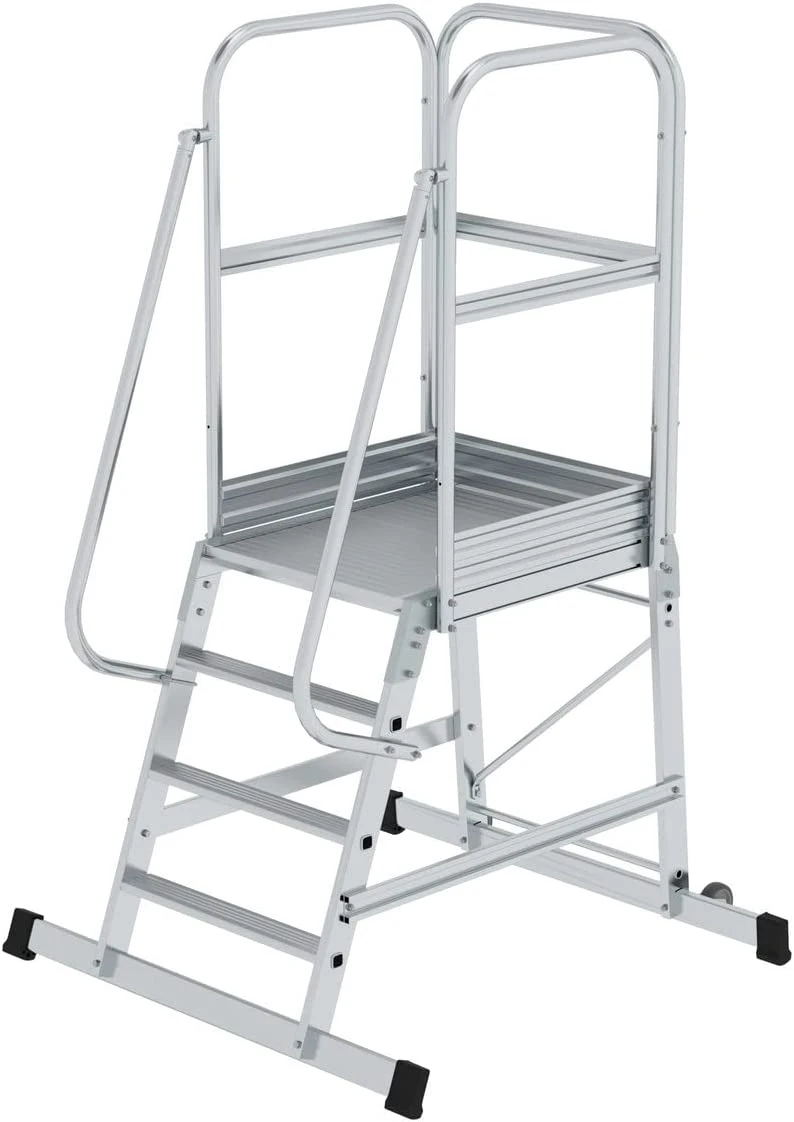 Aluminium-Podesttreppe, Einseitig Begehbar, Fahrbar, 4 Stufen