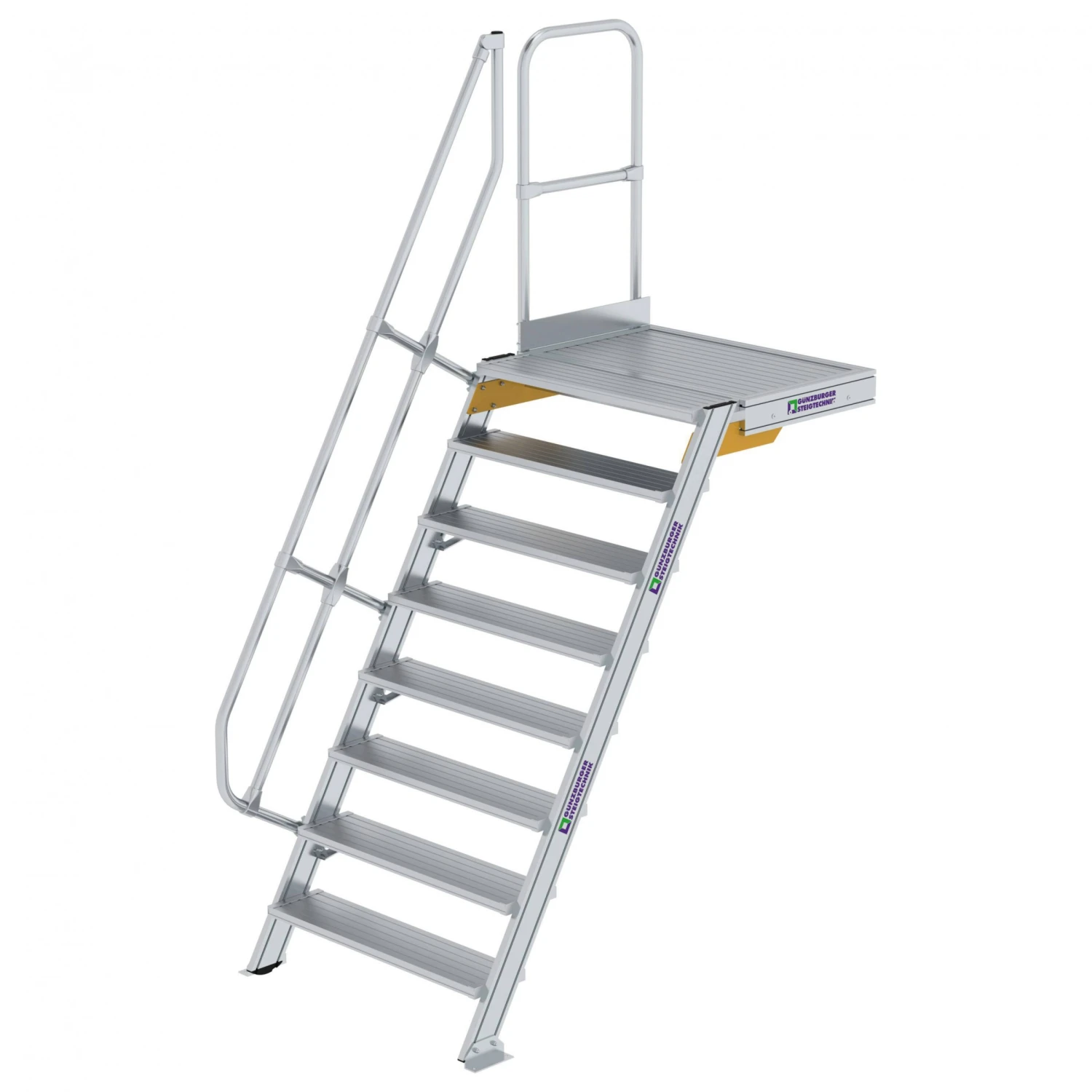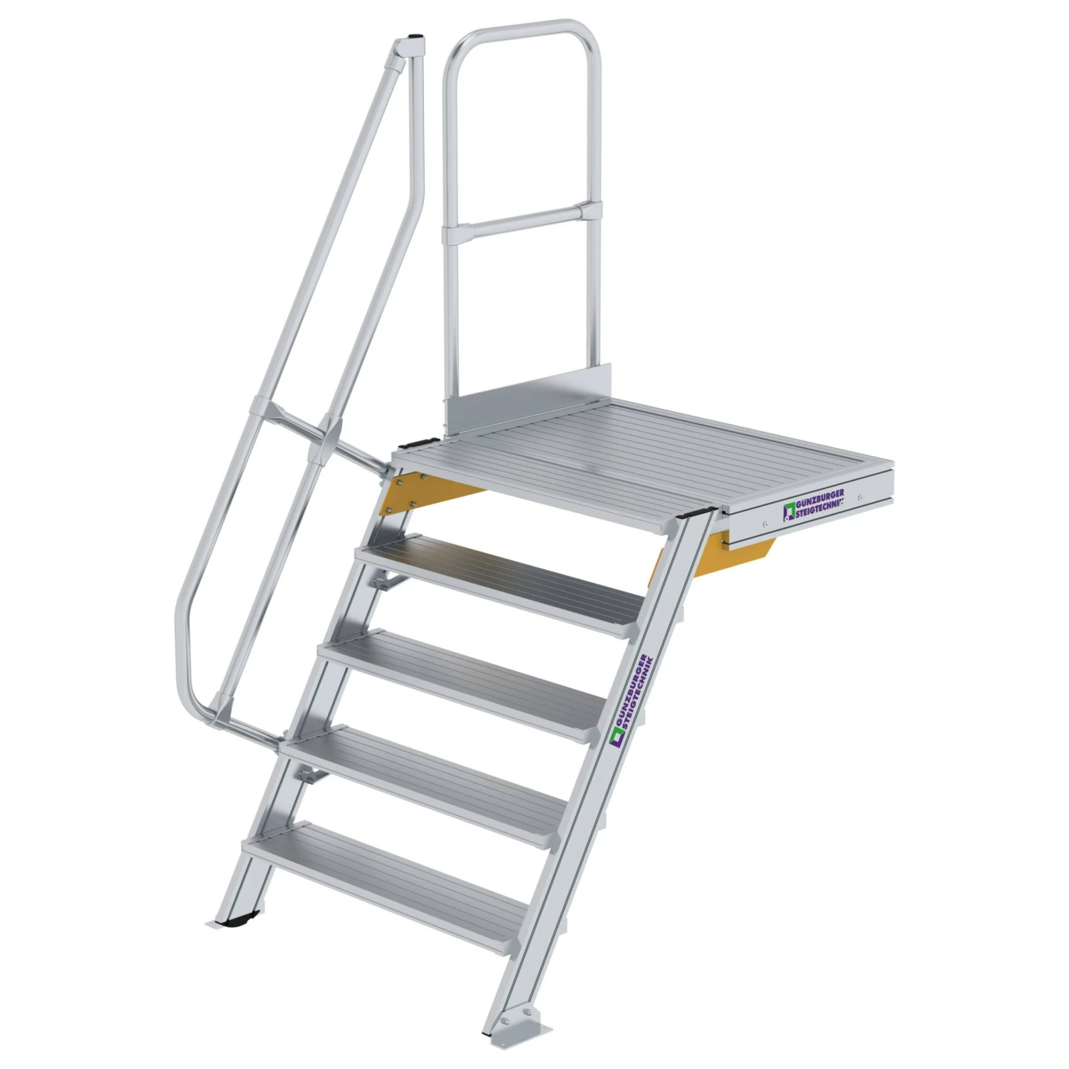 - Stufen- und Plattformausführung standardmäßig in Aluminium geriffelt (R9), optional auch andere Beläge erhältlich