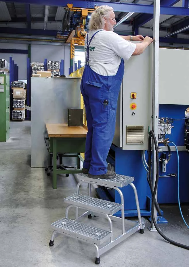 Arbeitspodest Starr Stahl-Gitterrost Mit Rollen, 2 Stufen