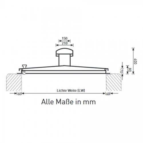 - Ab 800 × 800 mm bzw. Ø 800 mm mit Gasdruckdämpfer
