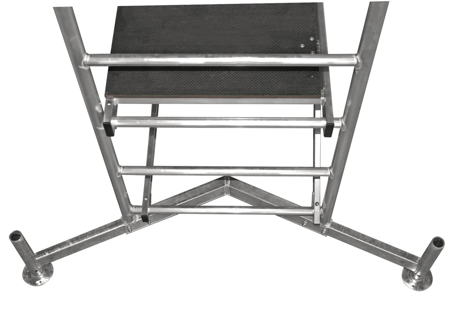 - die V-förmige Traverse bietet duch die Vergrößerung der Standfläche in Längs- und Querrichtung ein Optimum an Sicherheit und ermöglicht ein wandnahes Arbeiten