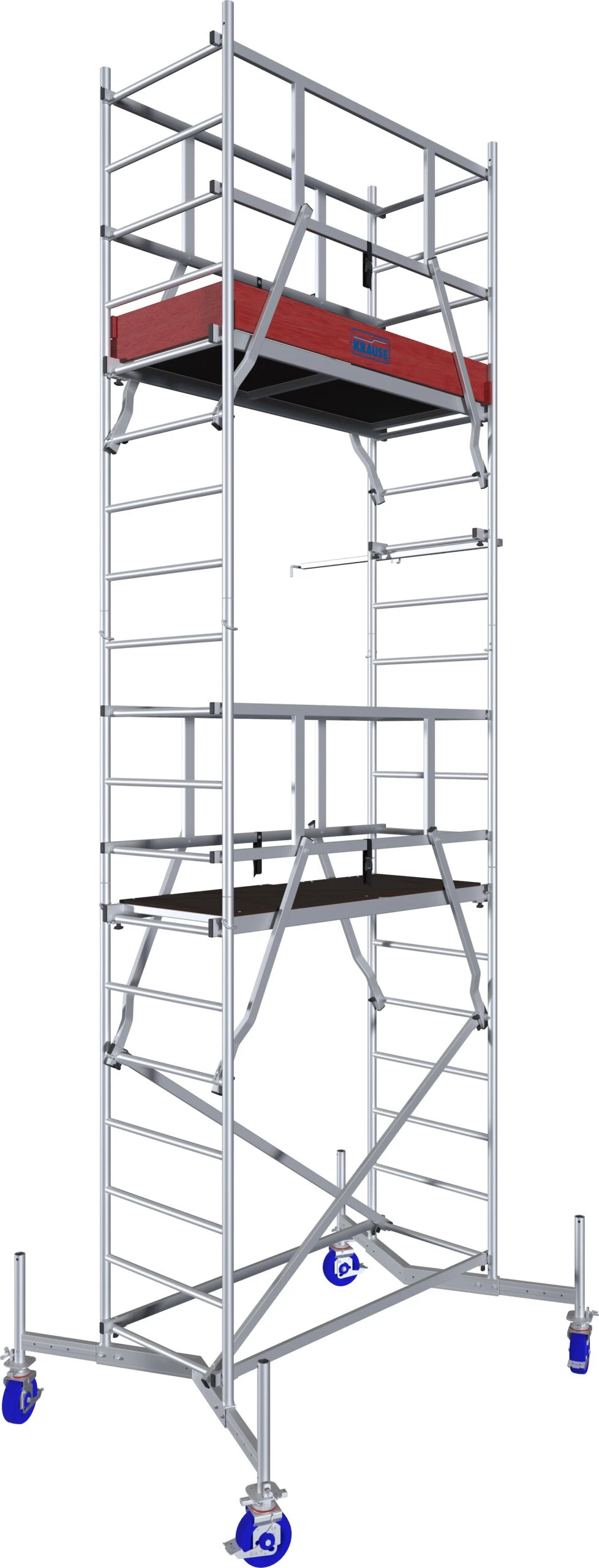 - Das ClimTec Grundgerüst lässt sich im aufgebauten Zustand, bedingt durch die niedrige Gerüsthöhe und einziehbaren Traversen, problemlos durch Türen schieben und ist somit das ideale Gerüst für den Innenausbau.