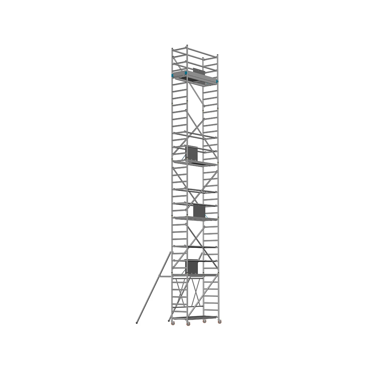 Äußerste Stabilität durch Rundsprossen, welche formschlüssig ausgestanzt und rund um das Ständerrohr vollständig ausgeschweißt werden. Die ebenfalls formschlüssigen Klauen an Horizontalen und Diagonalen verbieten jegliches Spiel. Kein Wackeln, immer ein untrüglich sicheres Gefühl während den Arbeiten.