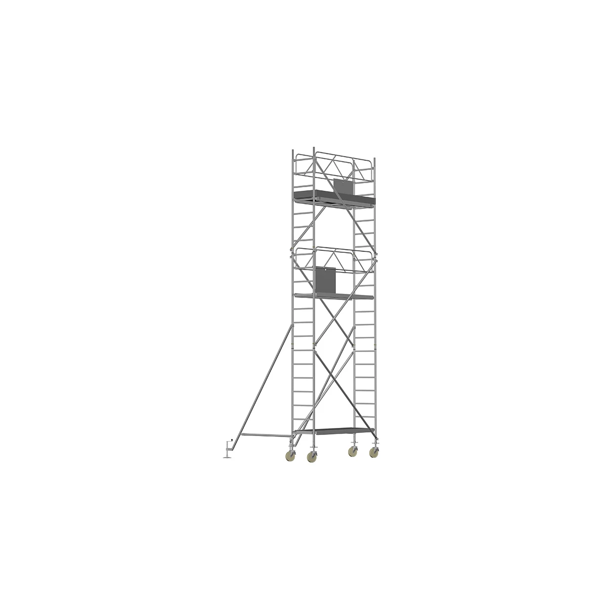 Die Fahrgerüste des Herstellers Ernst mit Rechtecksprossen entsprechen einer äußerst robusten Handwerkerausführung. Der Aufbau ist kinderleicht, da es sich um einfache Steckverbindungen handelt. Die Diagonalen werden an Bolzen mit Fallzunge, welche am Ständerrohr angeschweißt sind, eingehängt.