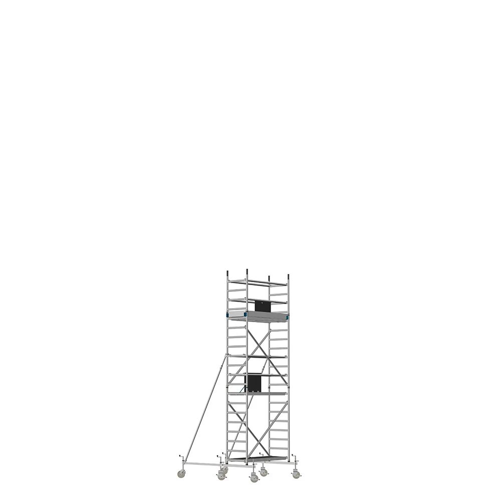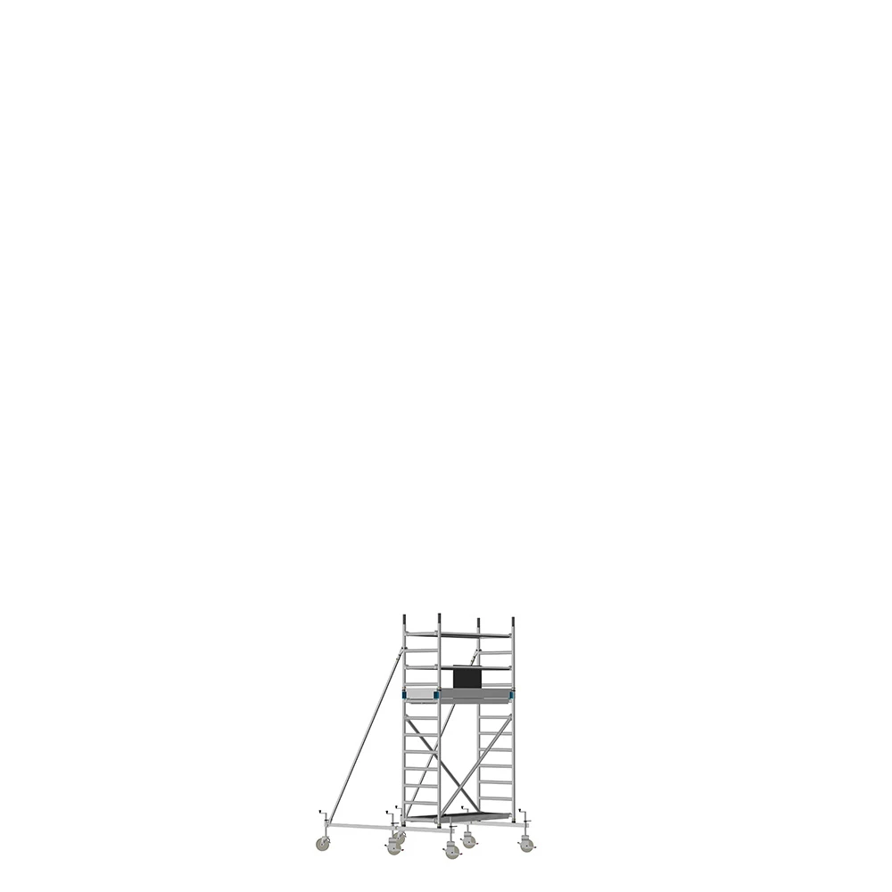 Die Fahrgerüste des Herstellers Ernst mit Rundsprossen entsprechen einer extra stabilen Industrieausführung. Der Aufbau ist kinderleicht, da es sich um einfache Steckverbindungen handelt. An den Diagonalen und Horizontalen (Geländer) sind Aluminiumklauen angeschweißt, welche formschlüssig über der Rundsprosse liegen. Eine spezielle Sicherung verhindert versehentliches Aushängen.