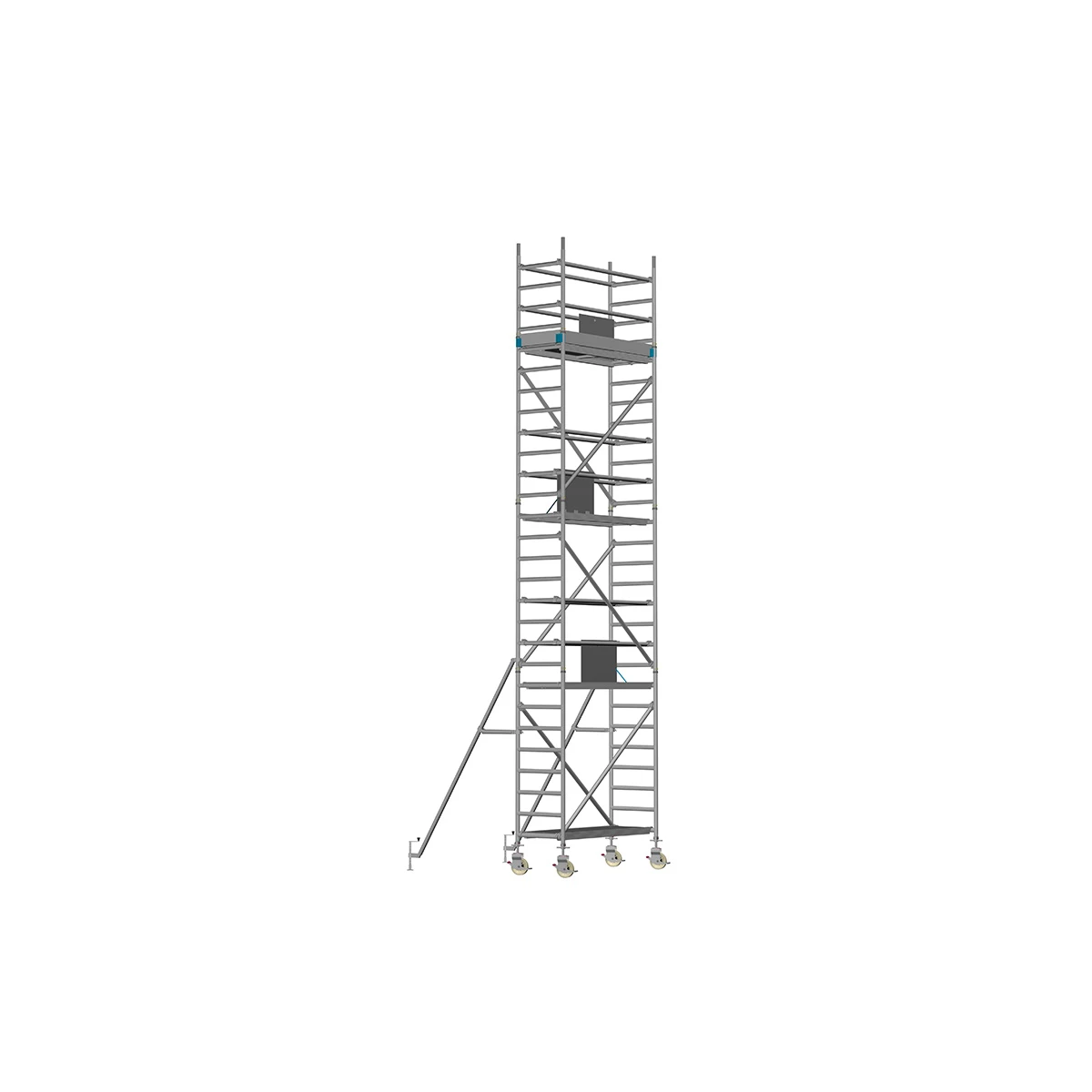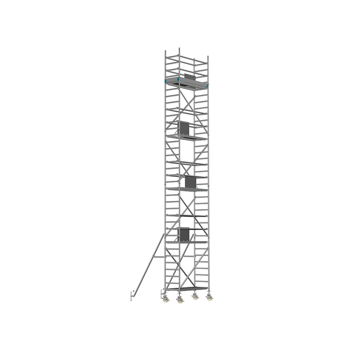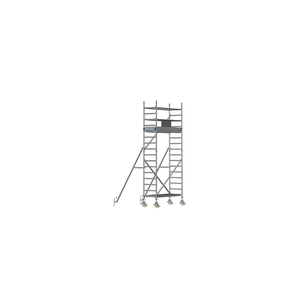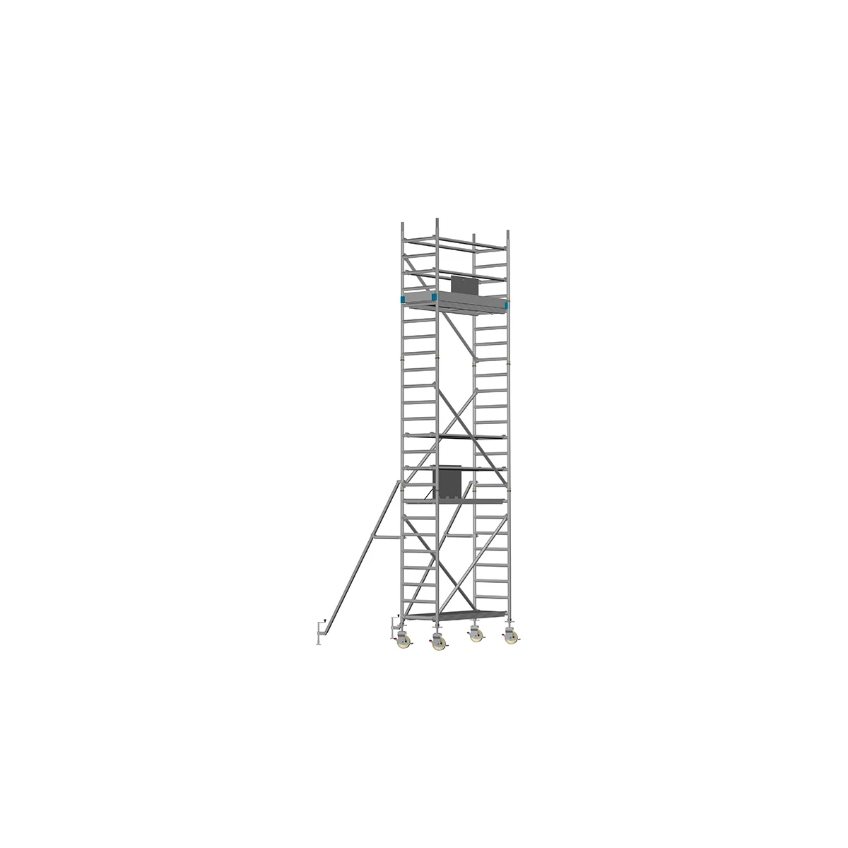 Die Fahrgerüste des Herstellers Ernst mit Rundsprossen entsprechen einer extra stabilen Industrieausführung. Der Aufbau ist kinderleicht, da es sich um einfache Steckverbindungen handelt. An den Diagonalen und Horizontalen (Geländer) sind Aluminiumklauen angeschweißt, welche formschlüssig über der Rundsprosse liegen. Eine spezielle Sicherung verhindert versehentliches Aushängen.