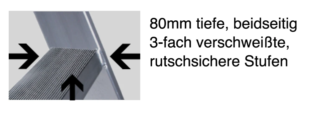 - 80mm tiefe, beidseitig 3-fach verschweißte, rutschsichere Stufen
