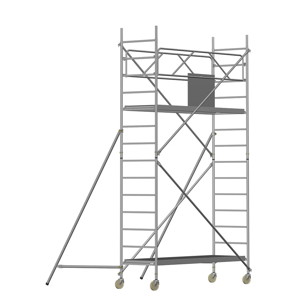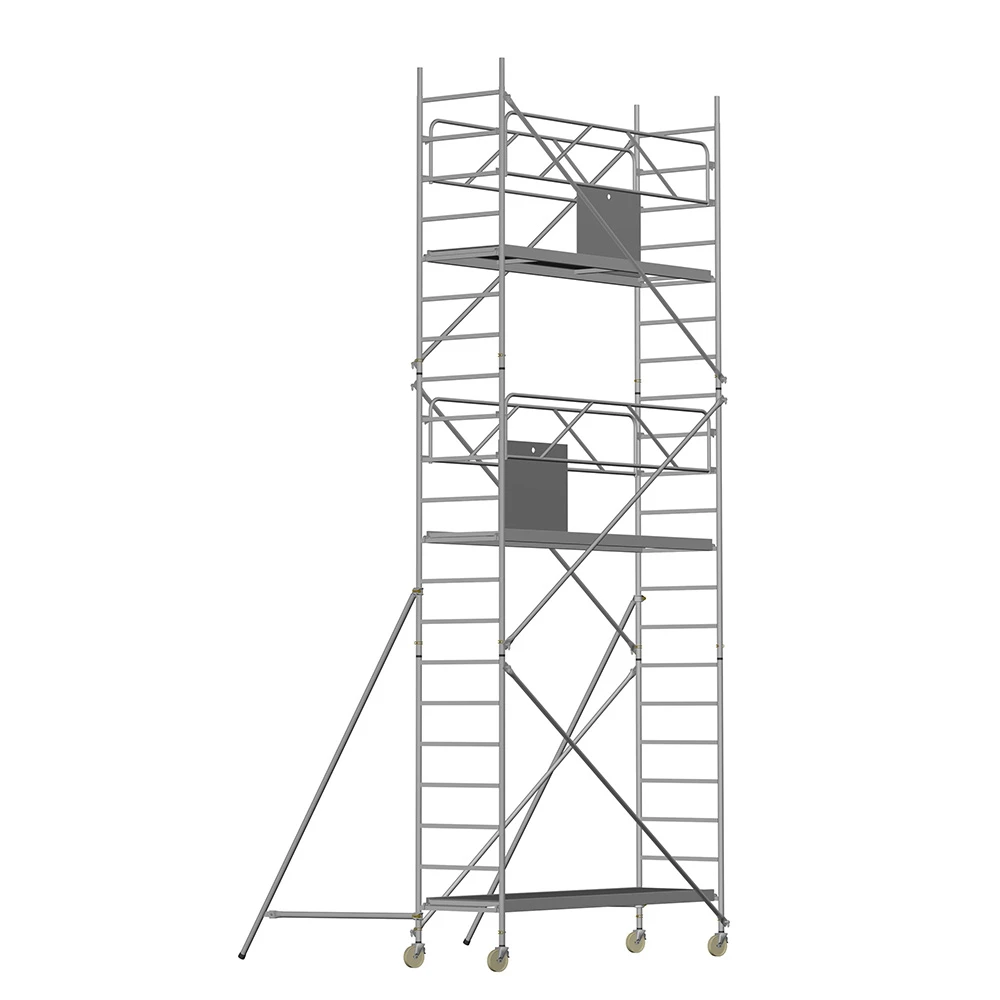 Die easy Fahrgerüste des Herstellers Ernst entsprechen einer äußerst robusten Heimwerkerausführung. Der Aufbau ist kinderleicht, da es sich um einfache Steckverbindungen handelt. Die Diagonalen werden an Bolzen mit Fallzunge, welche am Ständerrohr angeschweißt sind, eingehängt.