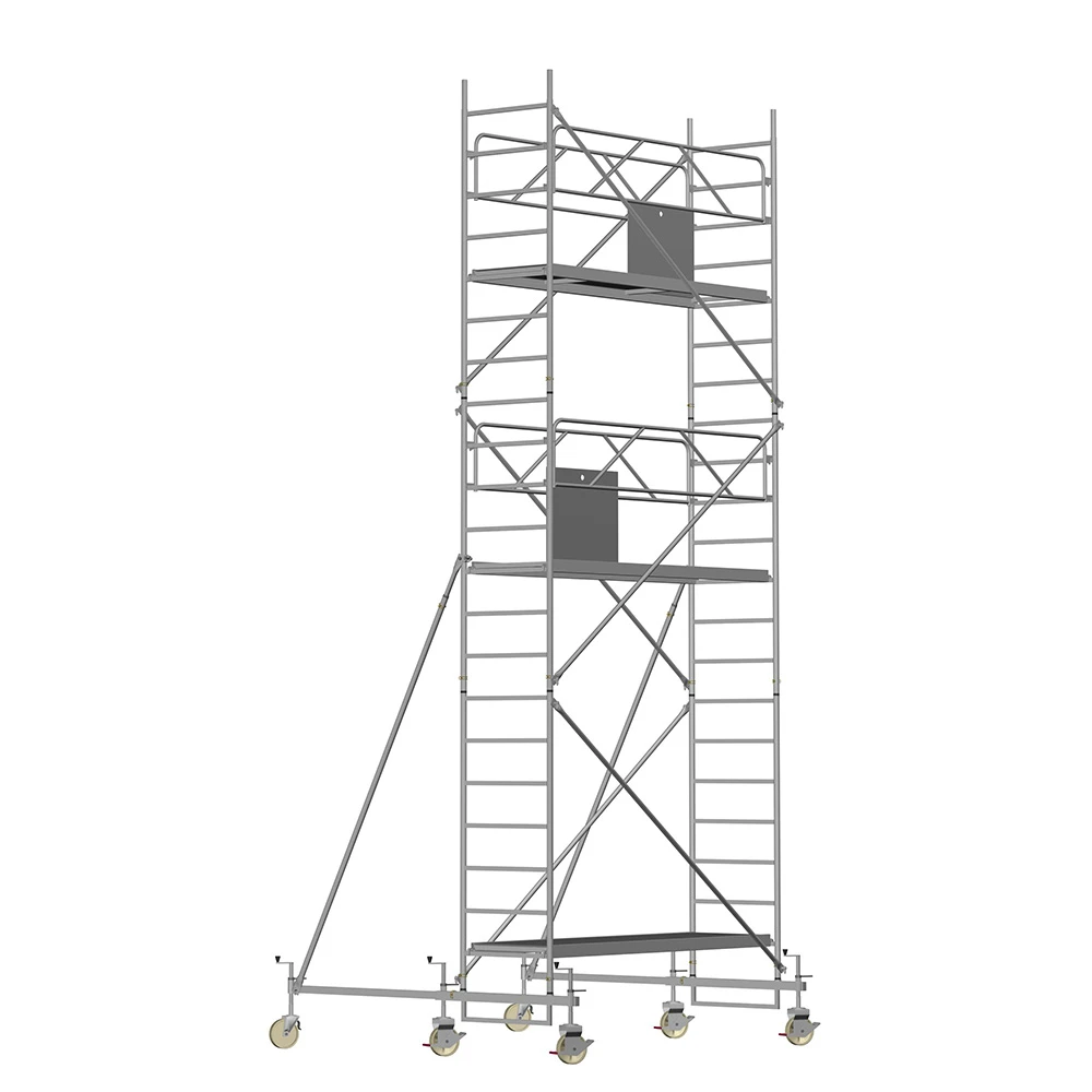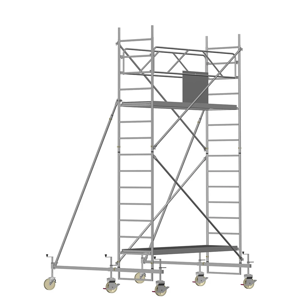 Die easy Fahrgerüste des Herstellers Ernst entsprechen einer robusten Heimwerkerausführung. Der Aufbau ist kinderleicht, da es sich um einfache Steckverbindungen handelt. Die Diagonalen werden an Bolzen mit Fallzunge, welche am Ständerrohr angeschweißt sind, eingehängt.
