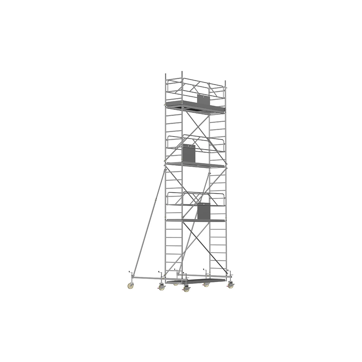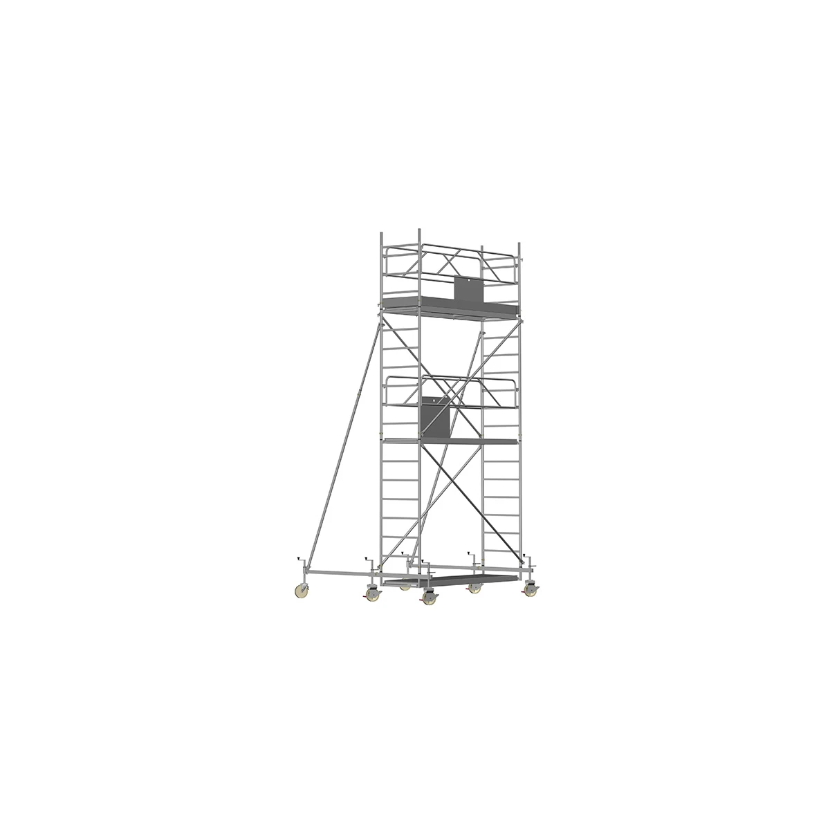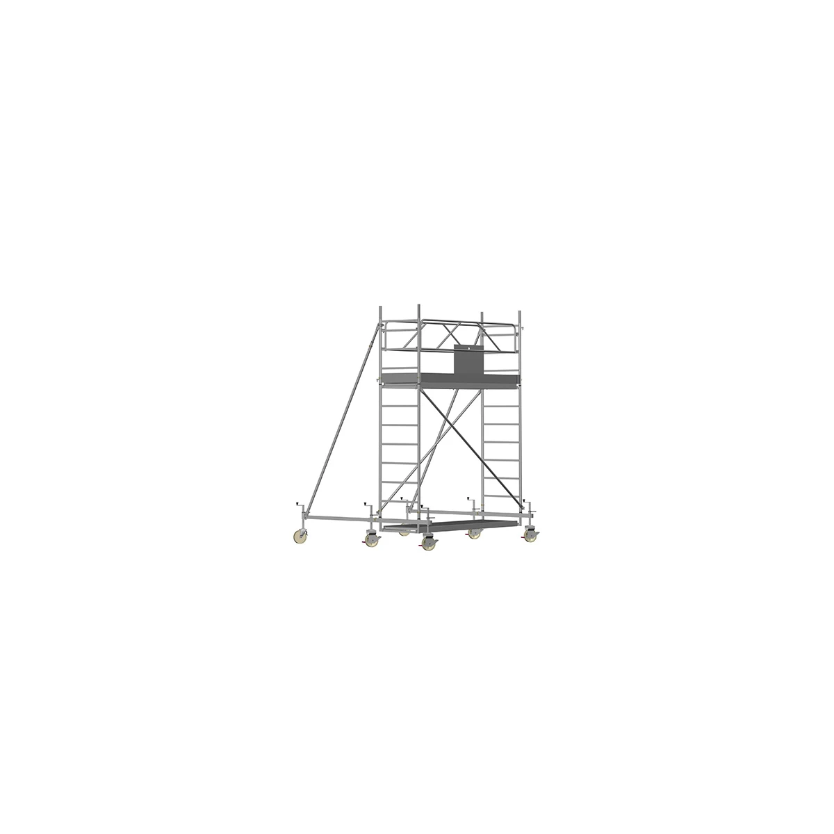 Die Fahrgerüste des Herstellers Ernst mit Rechtecksprossen entsprechen einer äußerst robusten Handwerkerausführung. Der Aufbau ist kinderleicht, da es sich um einfache Steckverbindungen handelt. Die Diagonalen werden an Bolzen mit Fallzunge, welche am Ständerrohr angeschweißt sind, eingehängt.