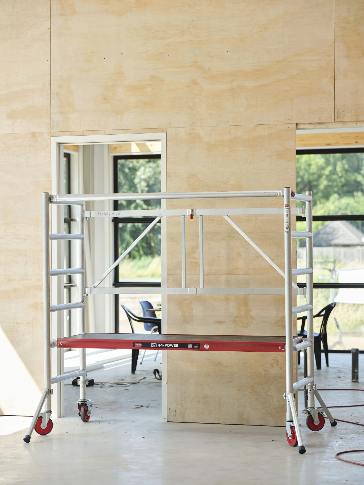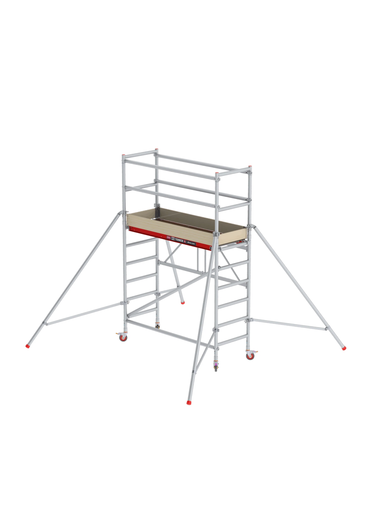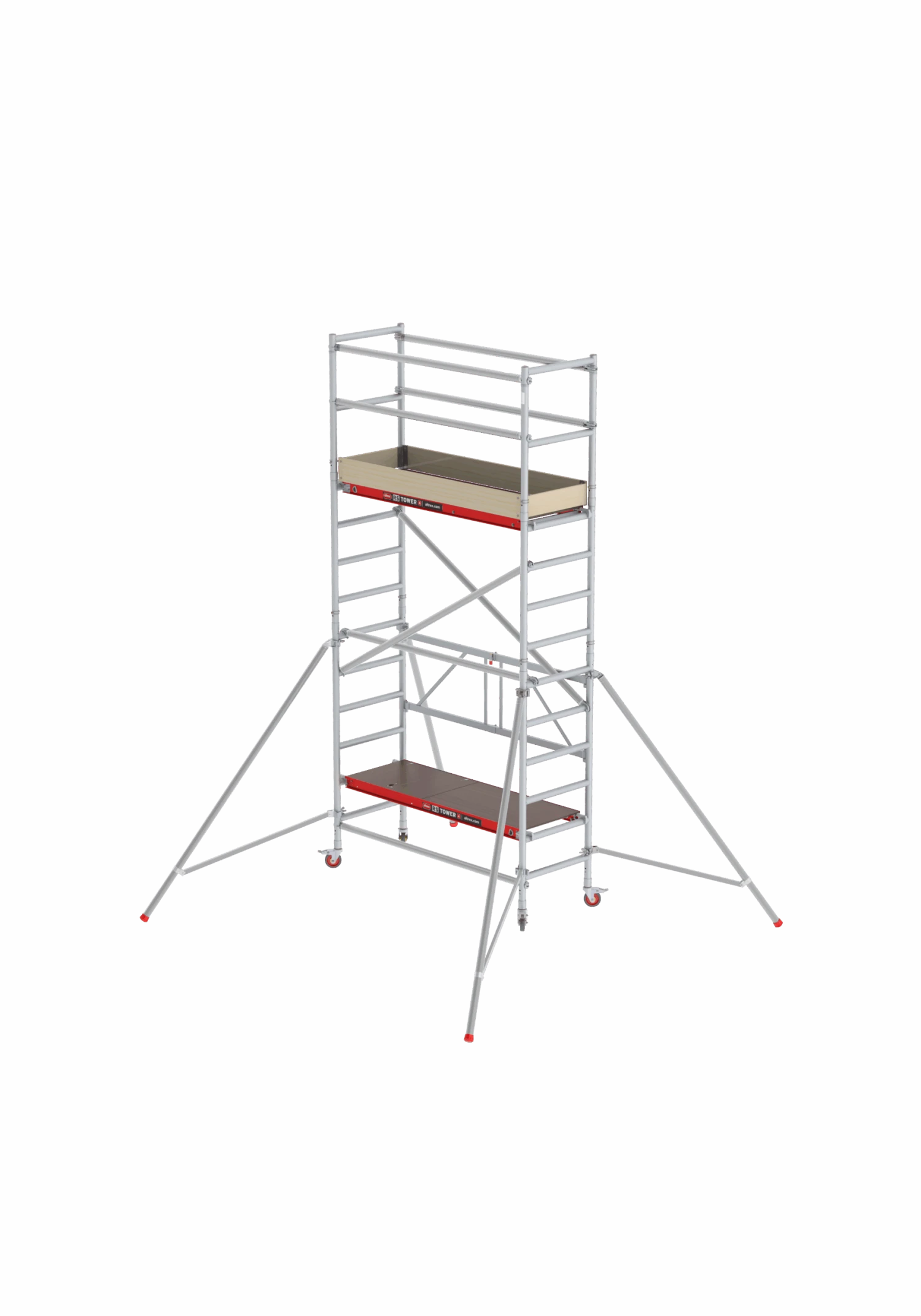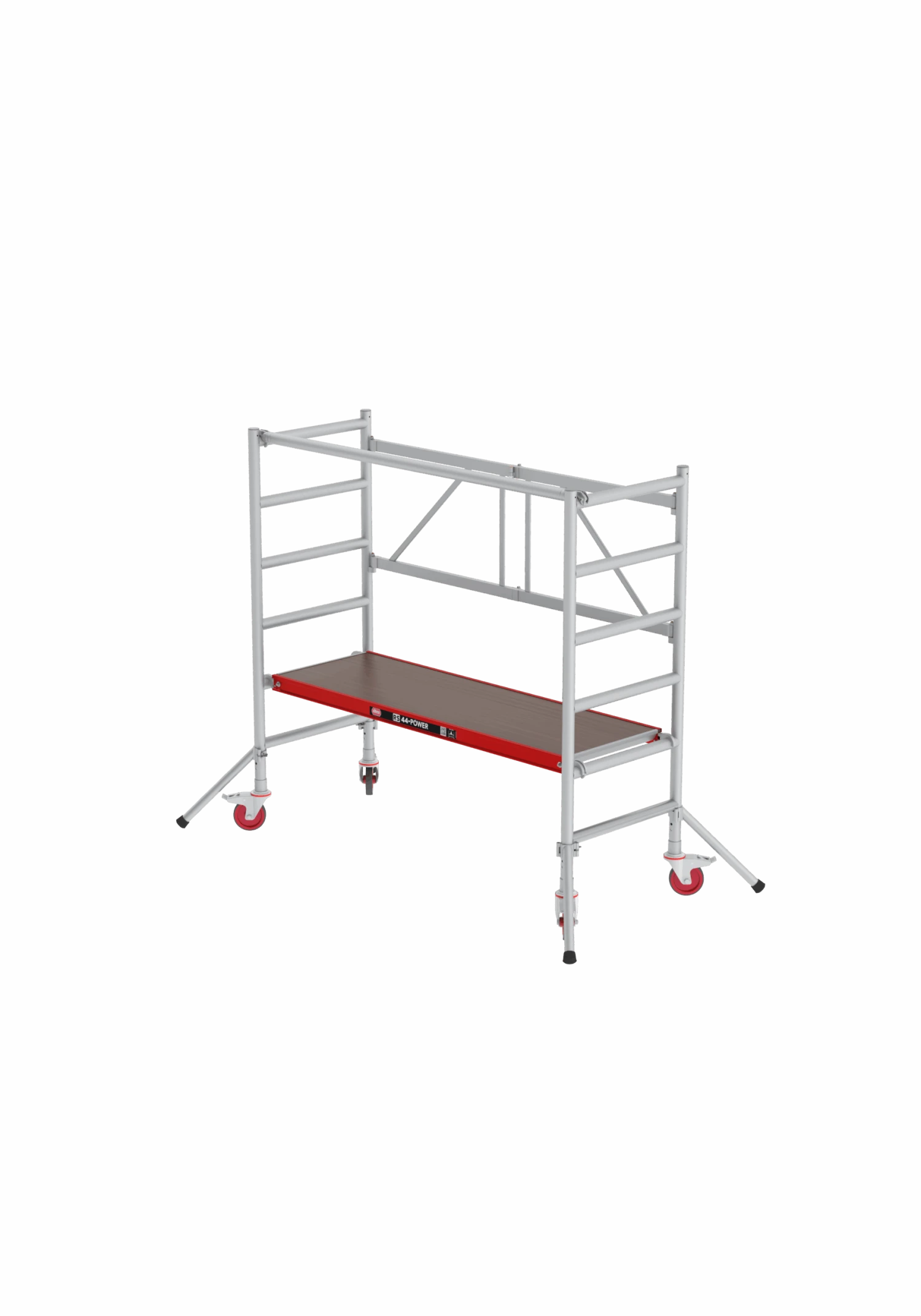 - 150 mm Räder mit Gummilauffläche ab 4,80 m Plattformhöhe 200 mm Lenkräder