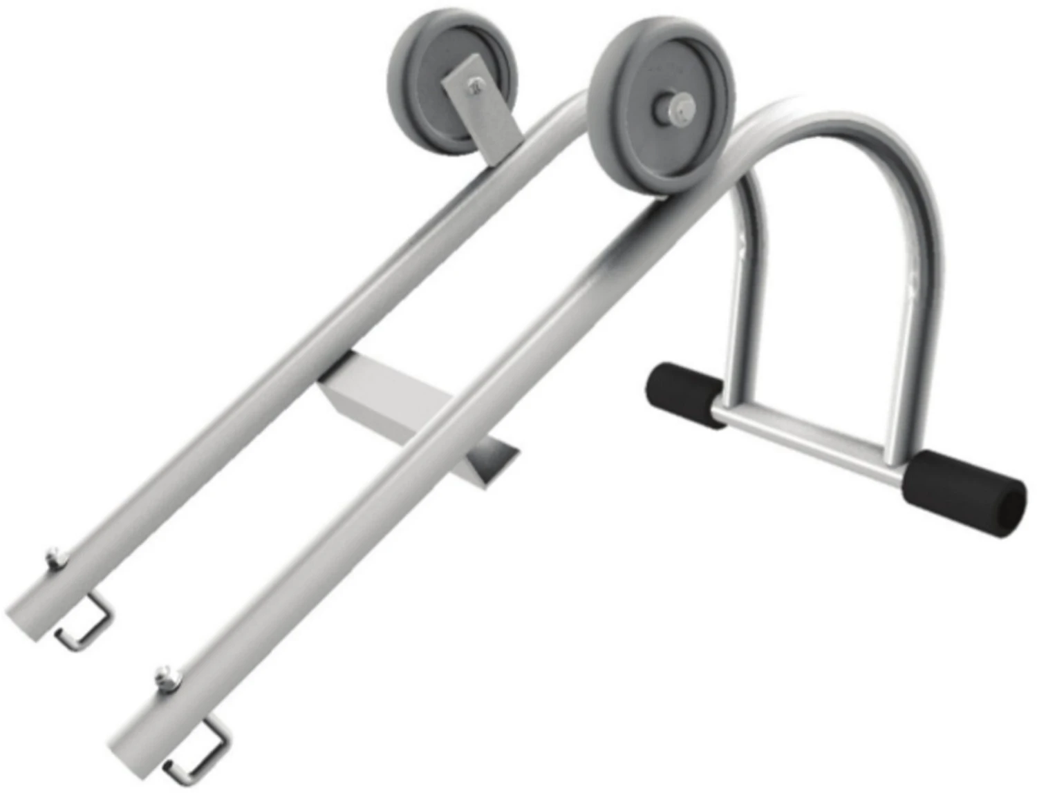 - Mit den Laufrollen kann die Anlegeleiter bequem zum First gerollt, umgedreht und sicher eingehängt werden