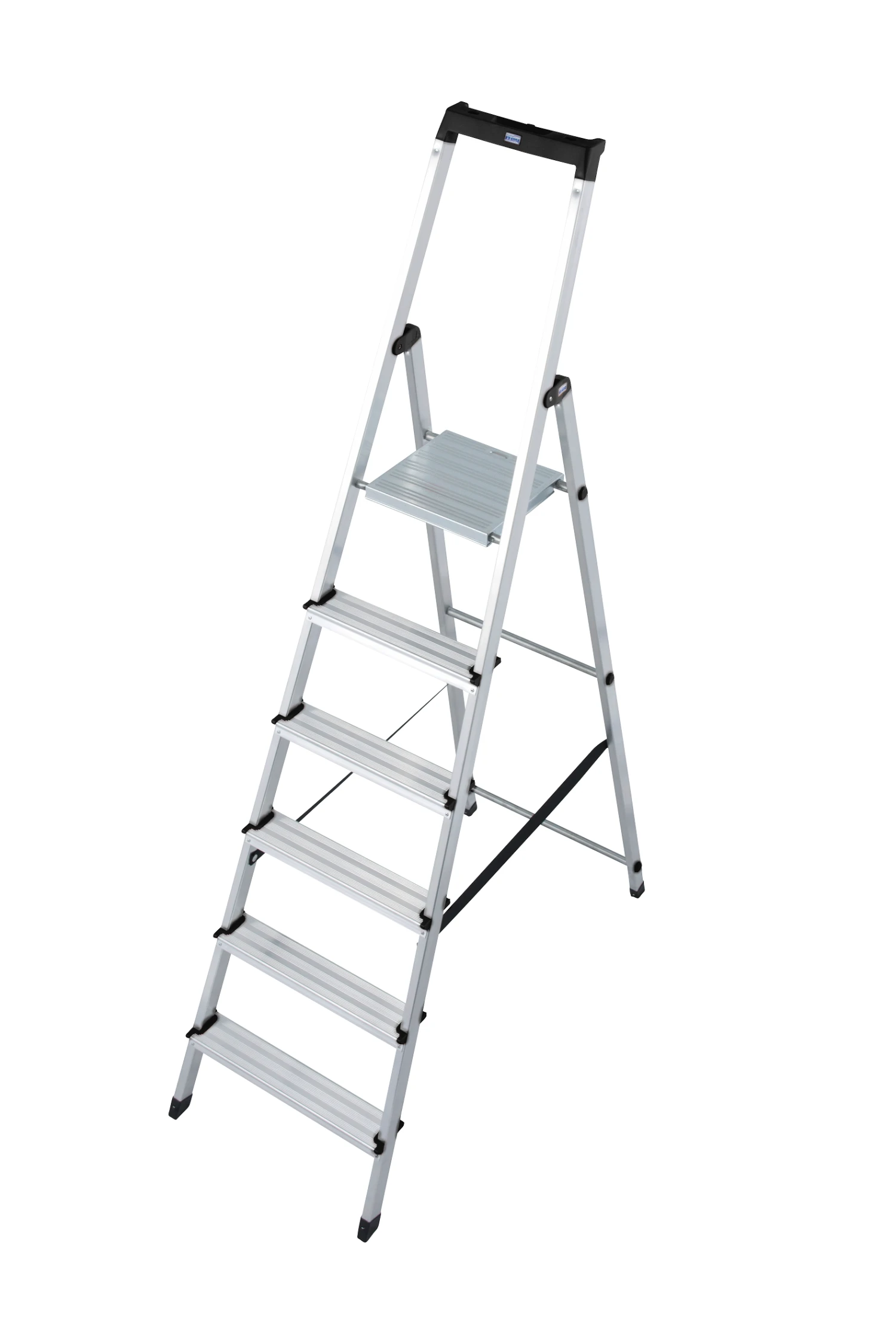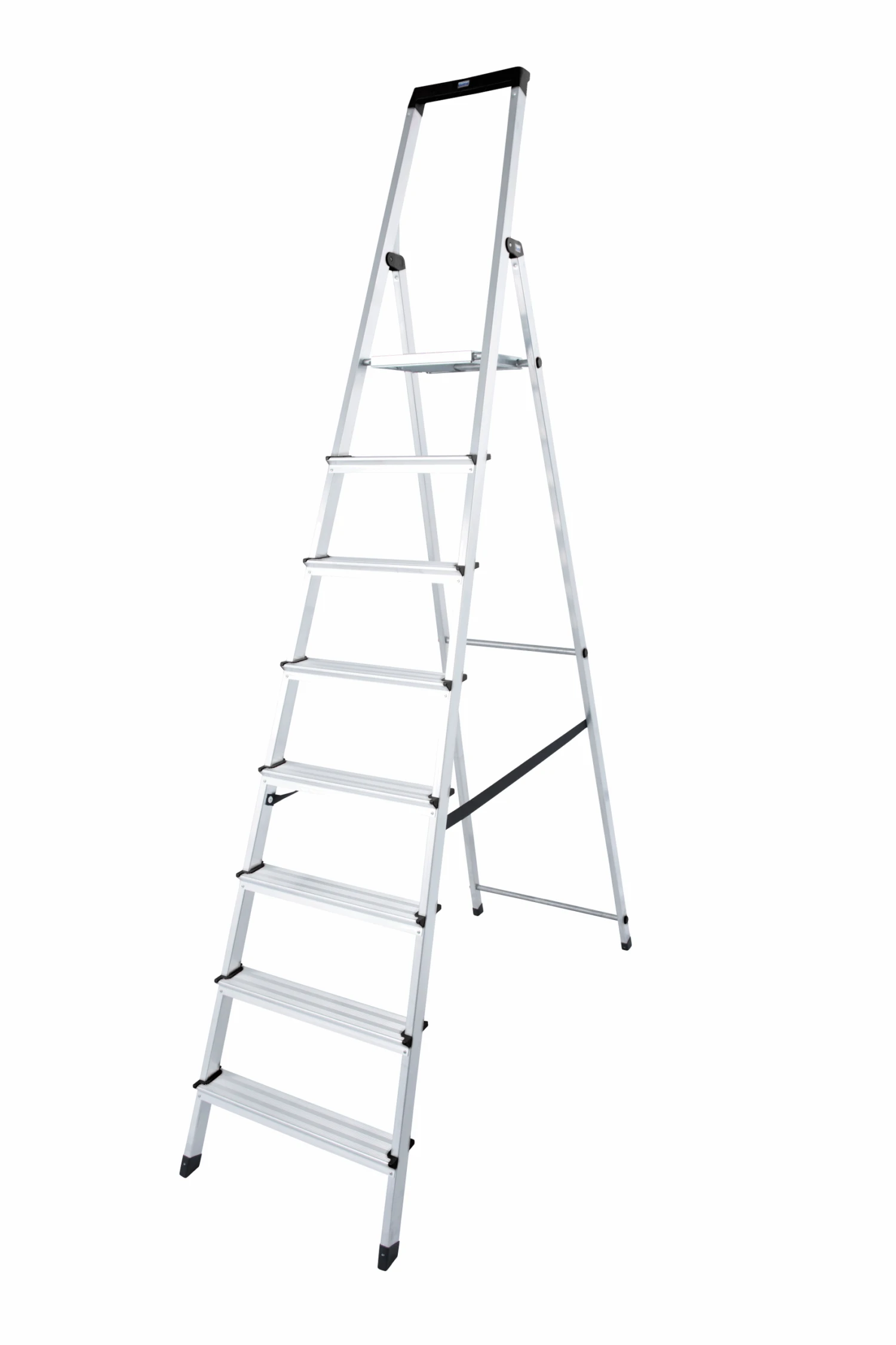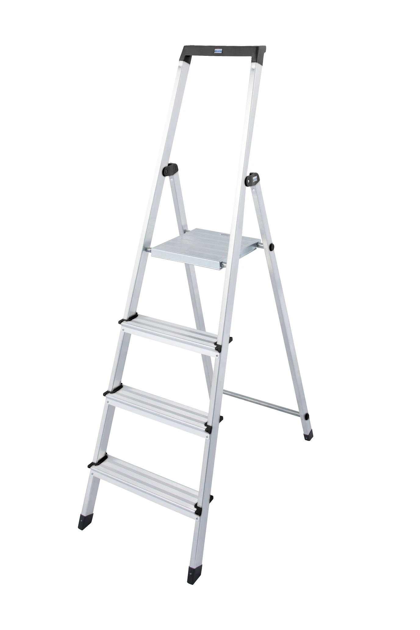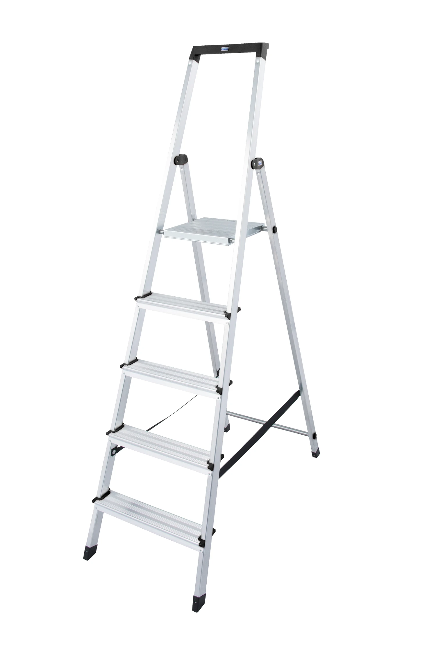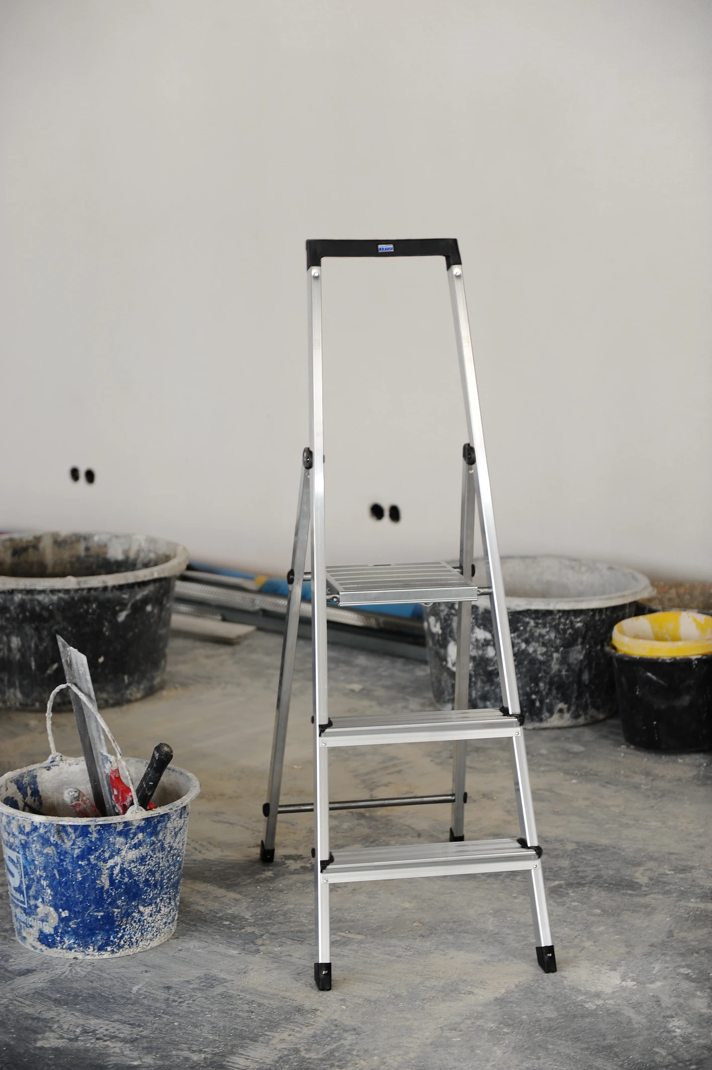 Die solide und praktische Stufen-Stehleiter mit kleiner Ablage und Eimerhaken für die unterschiedlichsten Tätigkeiten im Innenbereich.