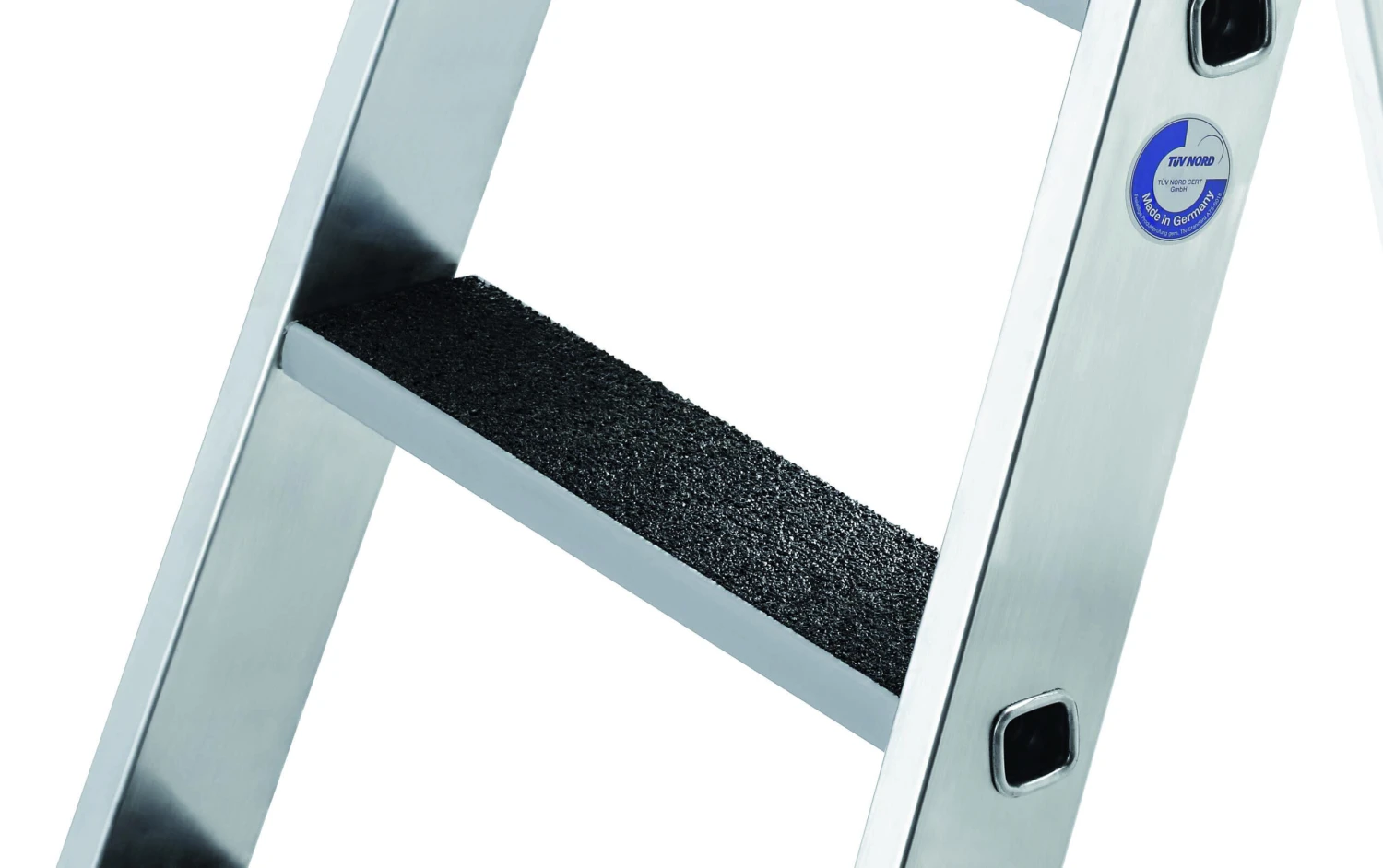 - Die clip-step R 13 Trittauflage wird bei beidseitig begehbaren Stufenleitern bis zur laut DIN EN 131 maximal begehbaren Stufe aufgebracht und funktioniert so als optische Kontrolle für den korrekten Gebrauch der Leiter
