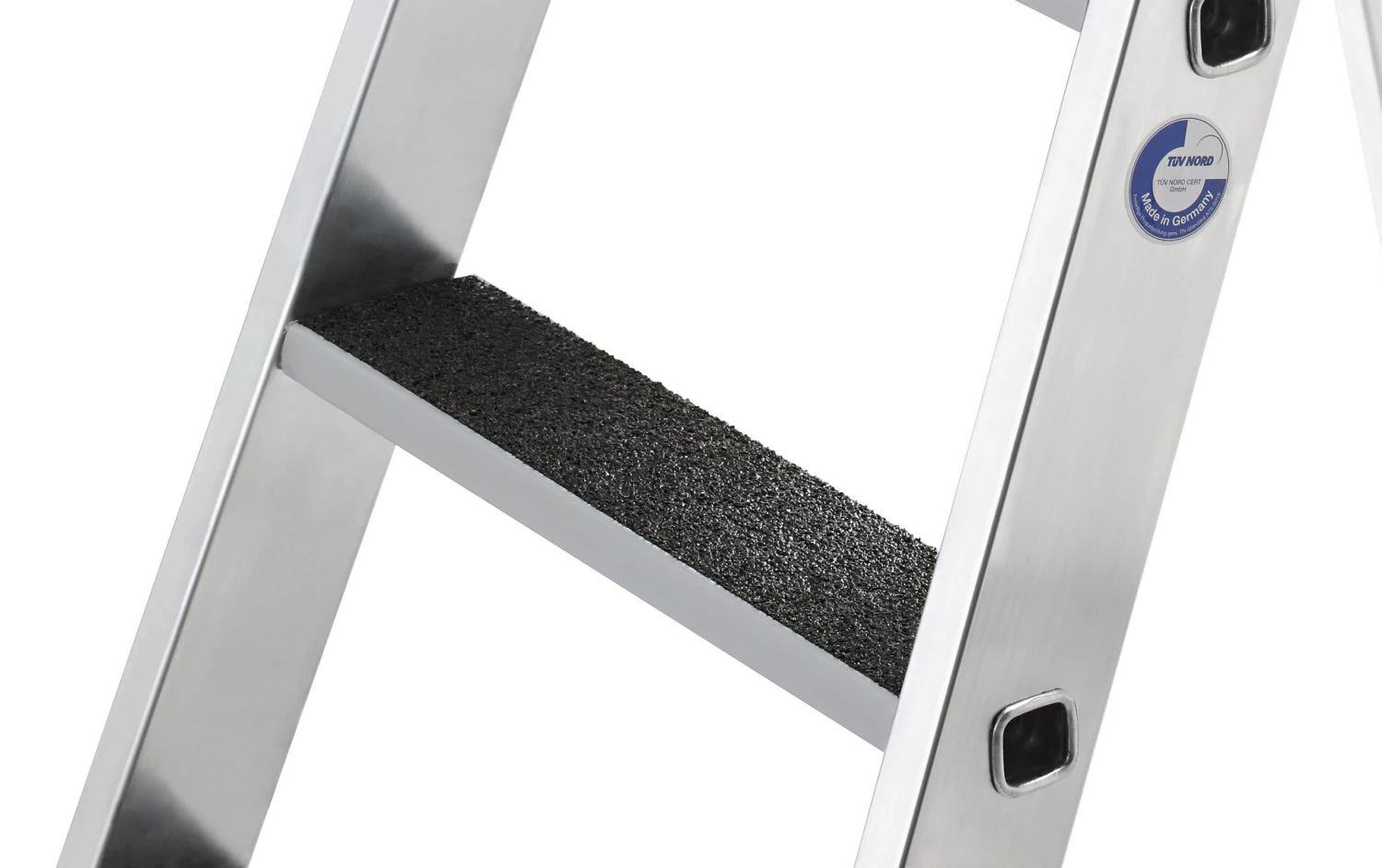 - Die clip-step R13 Trittauflage wird bei beidseitig begehbaren Stufenleitern bis zur laut DIN EN 131 maximal begehbaren Stufe aufgebraucht und funktioniert so als optische Kontrolle für den korrekten Gebrauch der Leiter