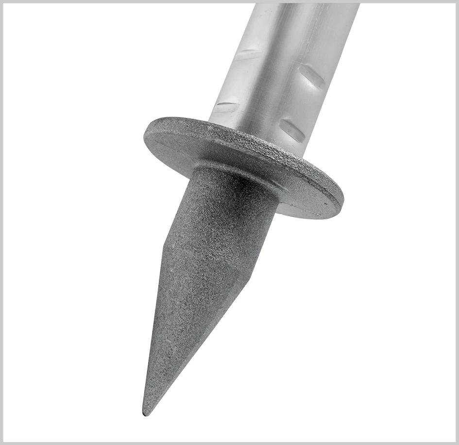 - Serienmäßig mit 70 mm langen Alu-Spritzen für optimalen Stand auf gewachsenem Boden