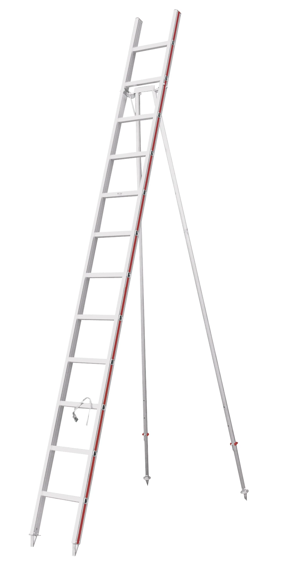 - Bei der freistehenden Verwendung ist der Neigungswinkel der Stützen annähernd gleich dem Leiterteil zu wählen