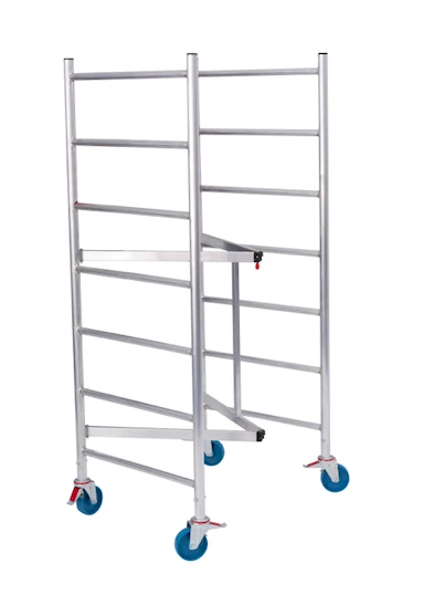 - Lieferung erfolgt in vormontierten Baugruppen. Nach Erstmontage ist das Gerüst schnell und ohne Werkzeug auf- und abgebaut und besteht aus nur zwei Teilen: Gerüstrahmen und Belagbühne