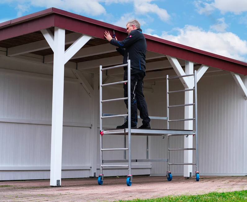 Das leicht verfahrbare und werkzeuglos aufstellbare Alu-FaltGerüst für den Innenausbau und Arbeiten im Außenbereich bei einer max. Arbeitshöhe