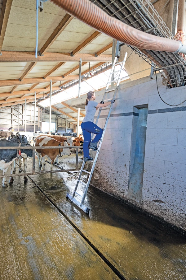- Standard-Traverse mit rutschsicheren Leiterschuhen in optimaler Breite zum gewählten Produkt für einen sicheren Stand und Aufstieg bei Anlegeleitern über 3,0 m. Die Traverse liegt lose bei und wird zweifach am unteren Holmende verschraubt