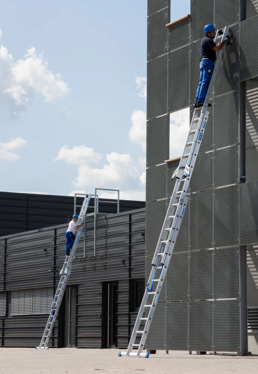 - Einsetzbar als Anlege-, Schiebe- und Stehleiter mit ausschiebbarem und einzeln herausnehmbarem und nutzbarem Leiternteil