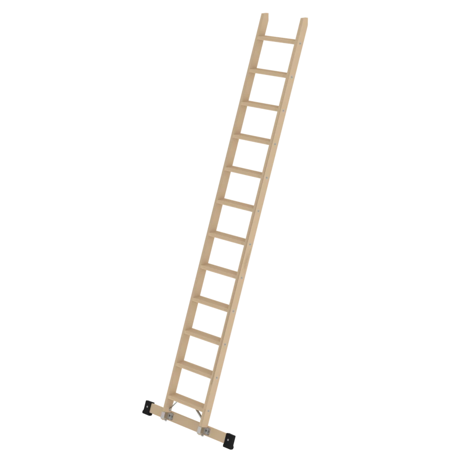 - Holz-Traverse mit rutschsicheren Leiterschuhen in optimaler Breite zum gewählten Produkt für einen sicheren Stand und Aufstieg bei Anlegeleitern über 3,0 m. Die Traverse liegt lose bei und wird zweifach am unteren Holmende befestigt