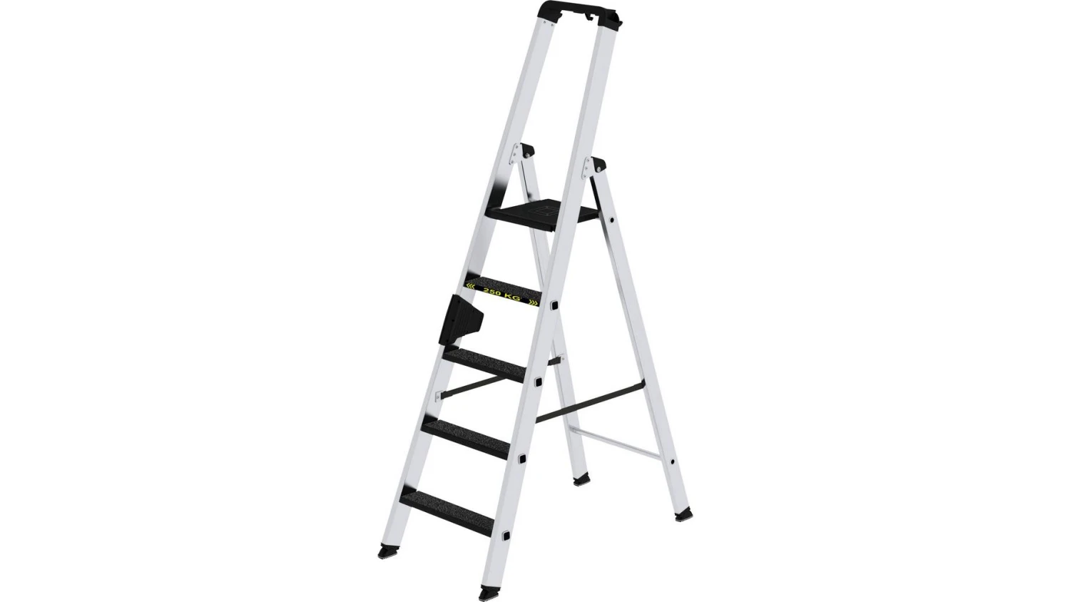 - Ab fünf Stufen: Spreizsicherung mit zwei hochfesten Polyestergurten