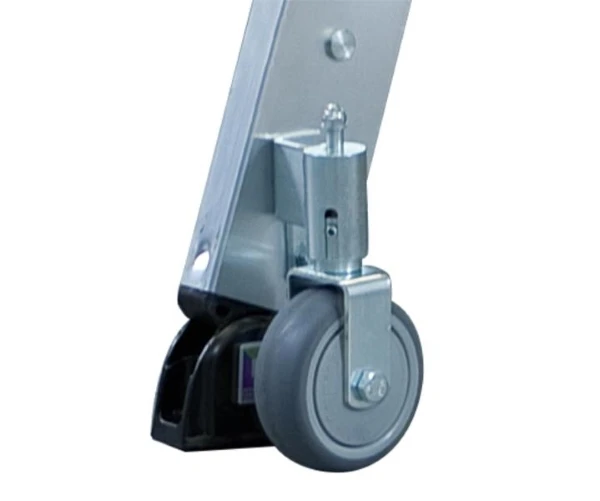 - Vier selbstarretierende Federrollen (Ø 80 mm)