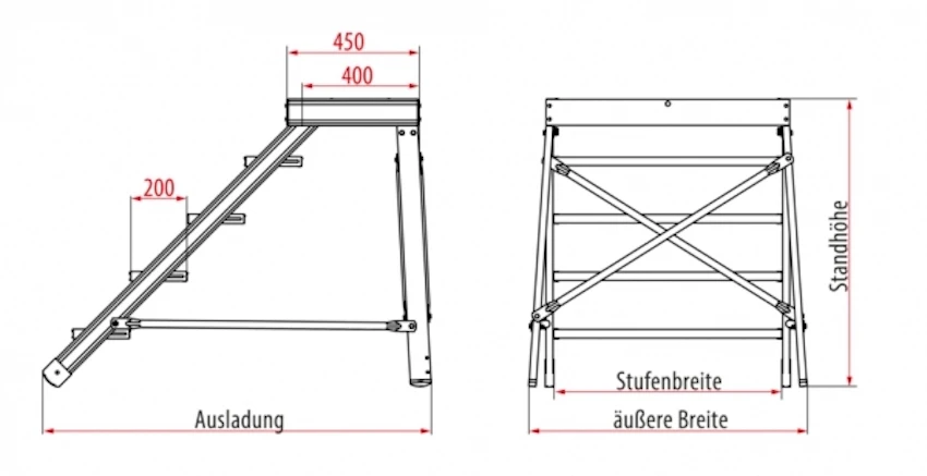 - Zulässige Belastung der Stufen 150 kg (1,5 kN)
